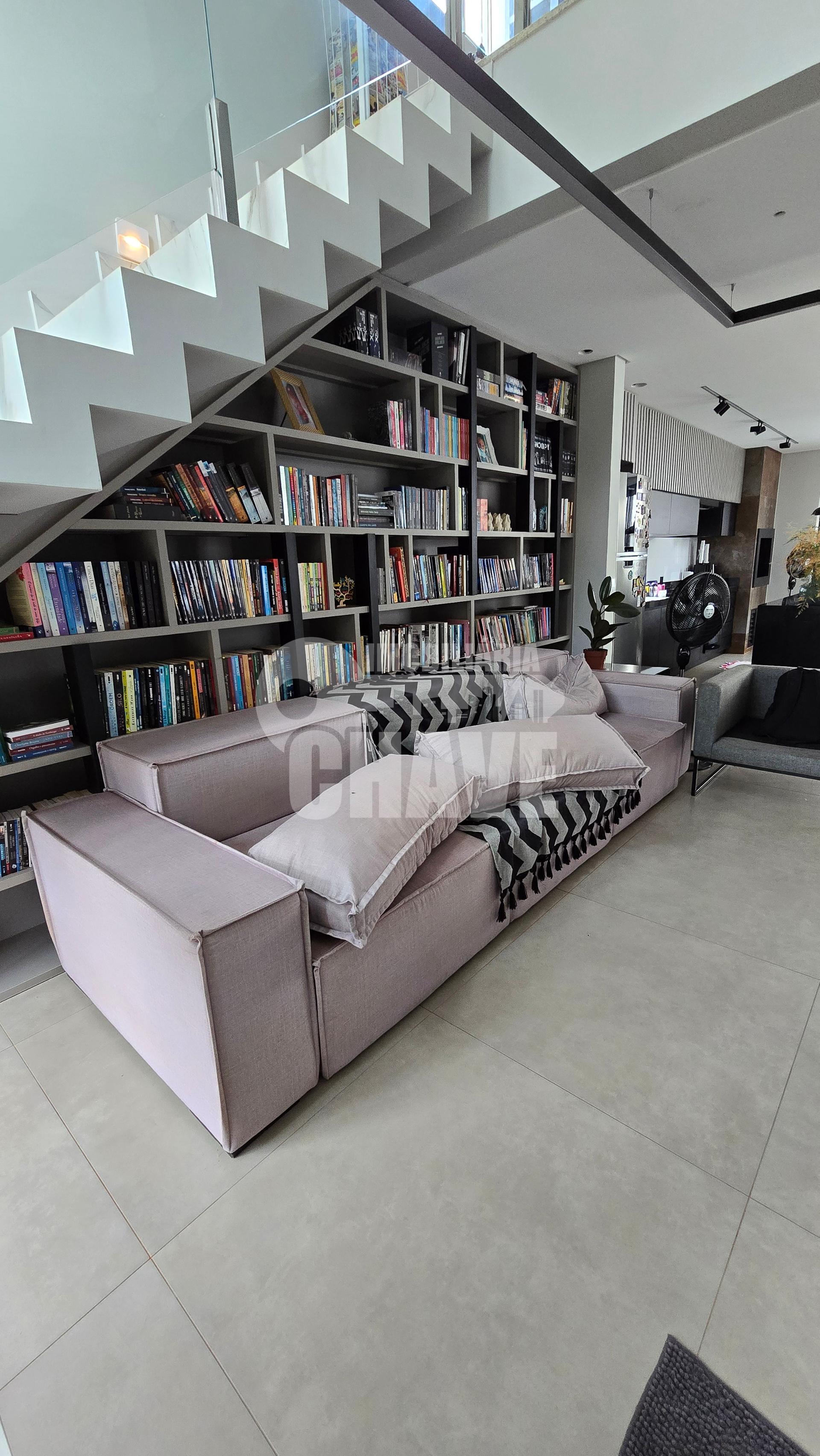 Sala com pé direito alto, proporcionando elegância e amplitude;