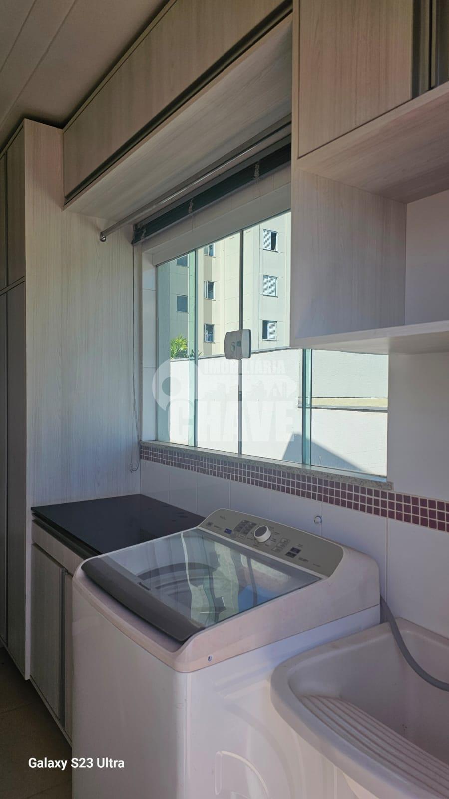 -Cozinha planejada moderna, com armários sob medida, dispensa e área de serviço equipada com máquina de lavar e armários funcionais;
